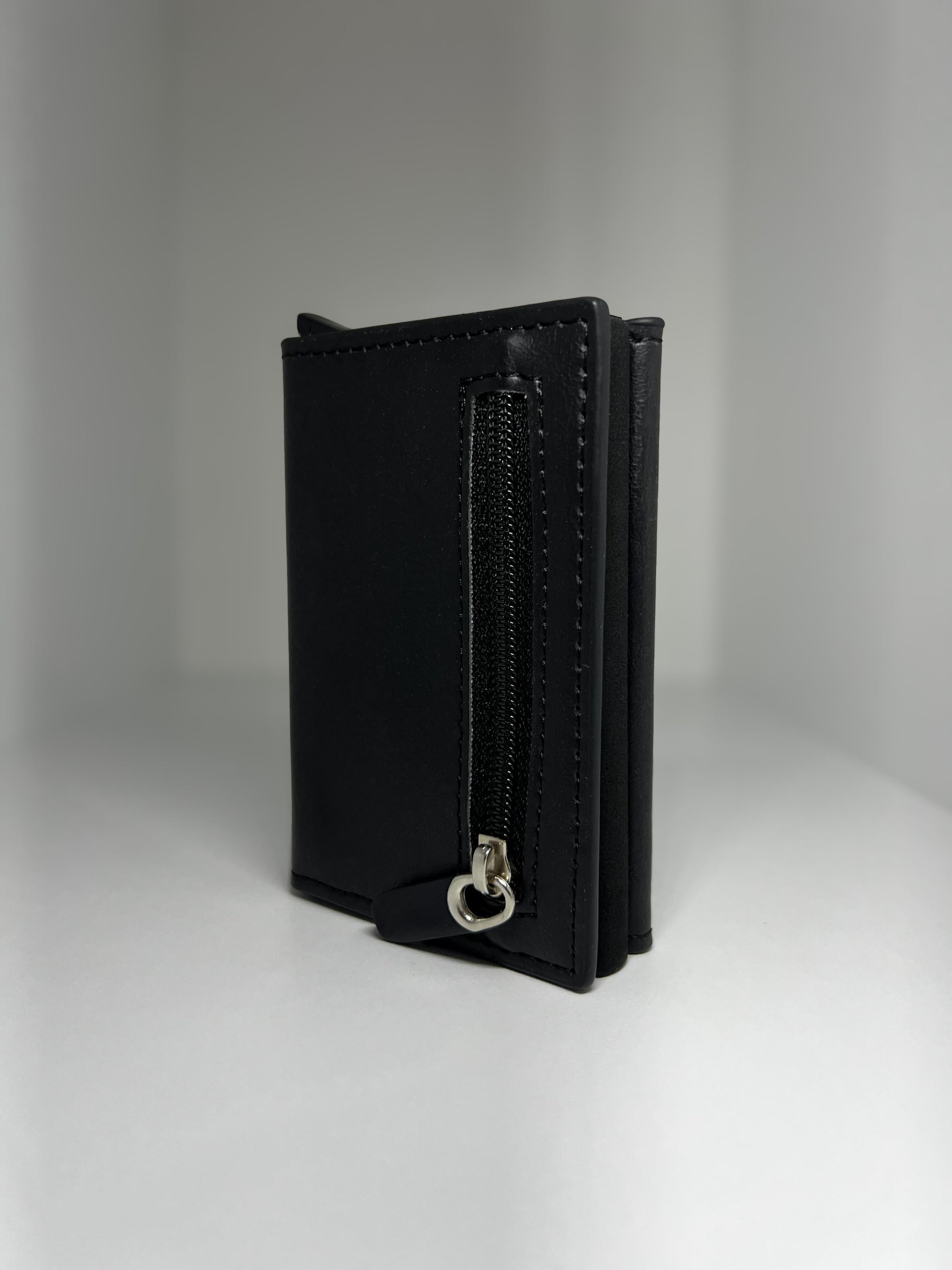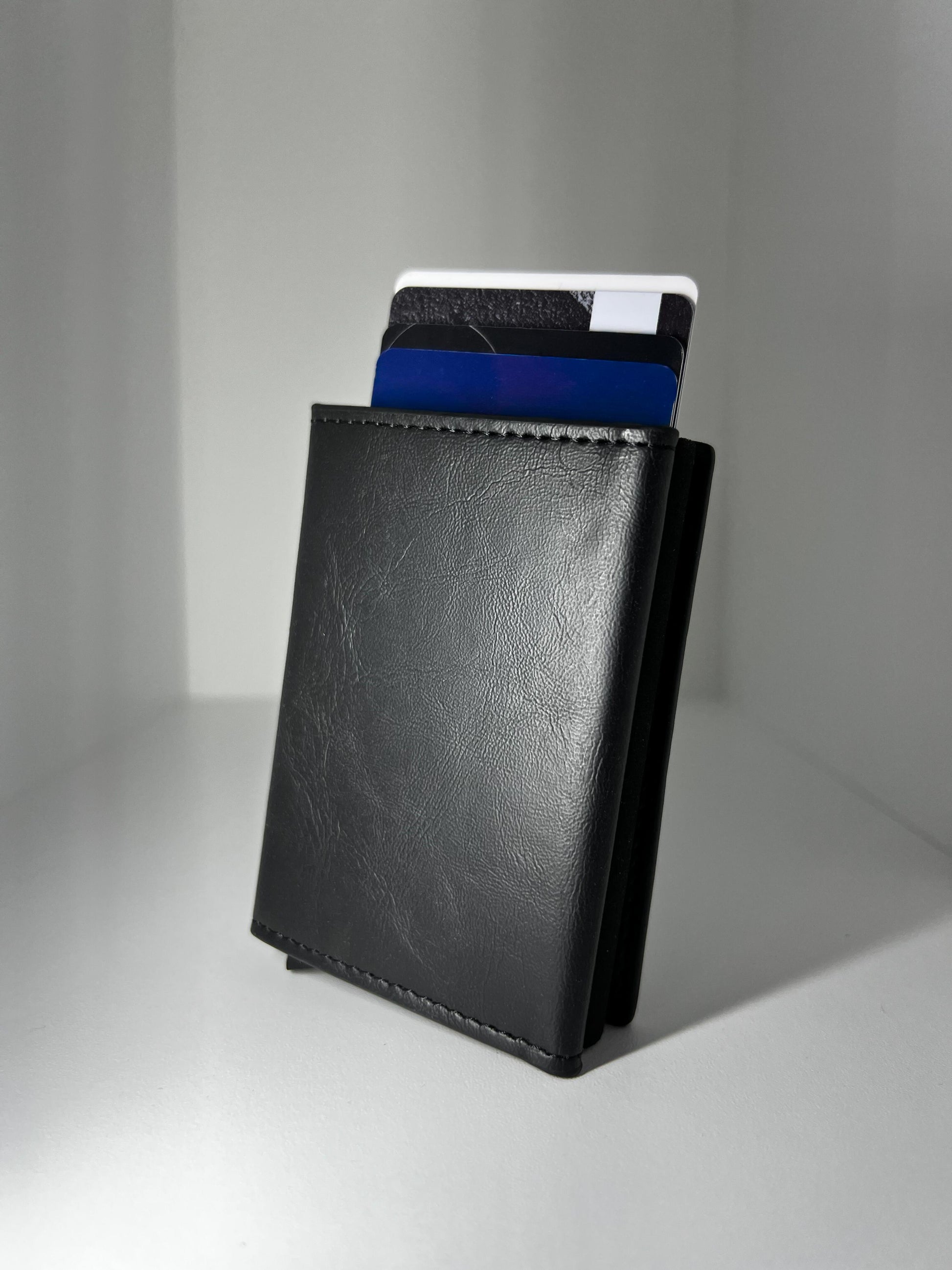 Cu o carcasă metalică îmbrăcată în piele ecologică fină, TrueFold îmbină durabilitatea cu rafinamentul. Cardurile din compartimentul principal se accesează instant printr-un buton lateral elegant, iar cele două sloturi secundare sunt perfecte pentru cash sau carduri suplimentare. Sistemul anti-RFID îți protejează datele, iar închiderea magnetică puternică îl menține mereu stabil și impecabil închis.